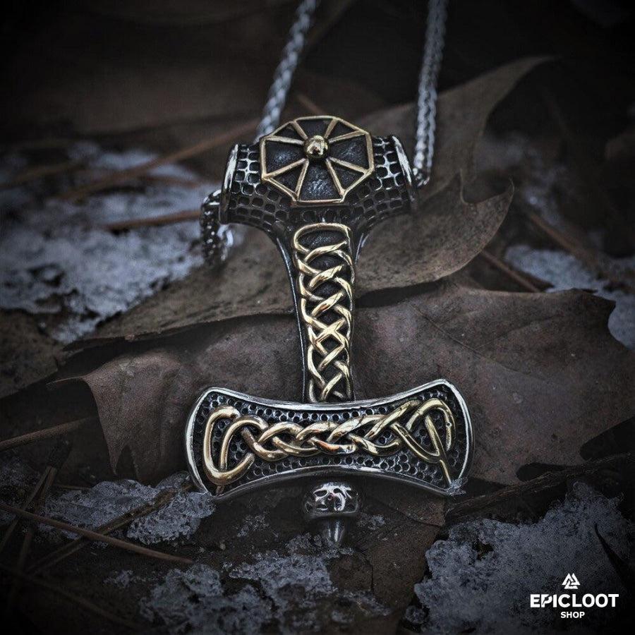 Decorated Thors Hammer Mjolnir Pendant Necklace