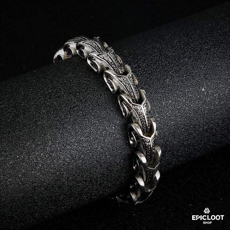 Awaken the dragon within with this powerful Dragon Viking Bracelet. The centerpiece of this bracelet is a pair of intricately detailed dragon heads, their eyes fierce and their jaws open in a roar of defiance. In Norse mythology, dragons were seen as creatures of great wisdom and strength, guardians of ancient treasures and hidden knowledge. The bracelet itself, crafted from durable stainless steel, is a testament to the enduring power and resilience of the Norse spirit. The twisted, serpentine band that links the dragon heads together creates a sense of movement and energy, a reminder of the untamed forces that reside within us all. Wear this bracelet as a declaration of your own inner fire, a talisman of the courage and passion that guides you on your path.