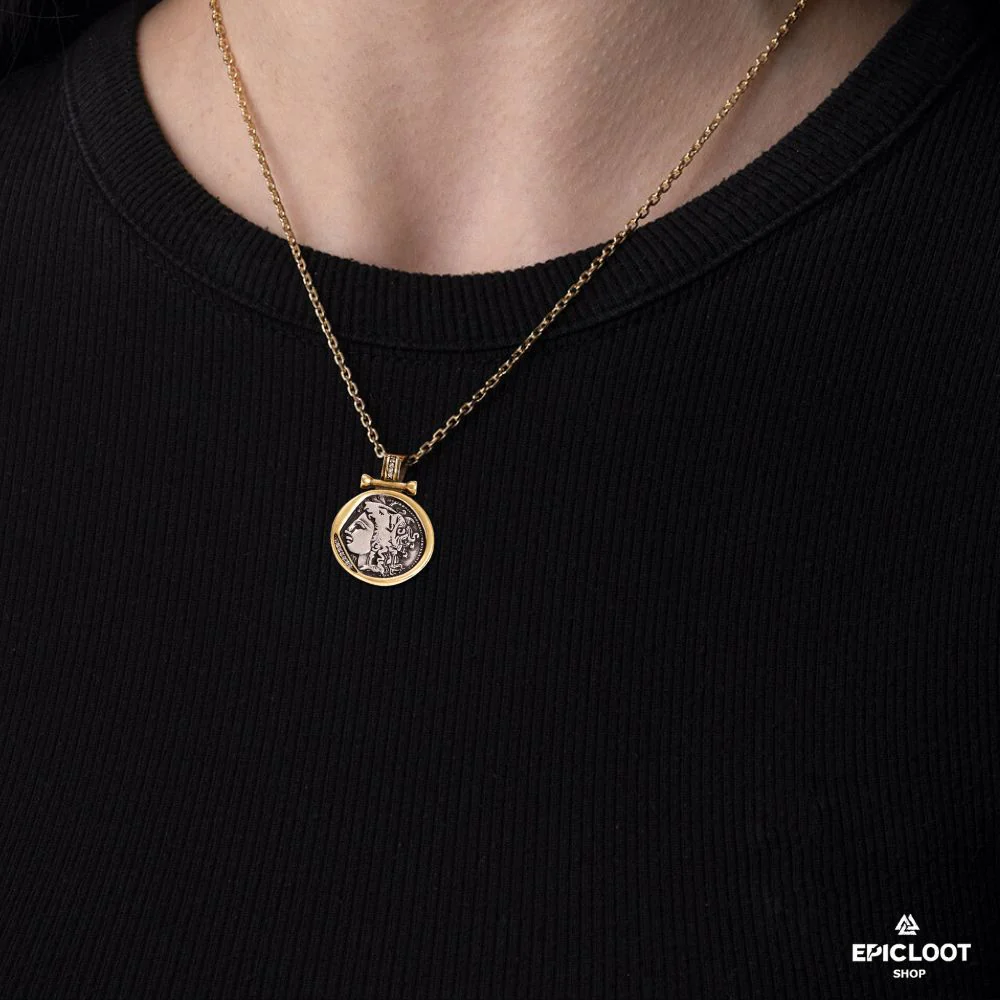 Step into the world of ancient mythology with this exquisite Greek Goddess Profile Pendant. Featuring a detailed profile of a classical goddess, this pendant is framed by a gold-toned border adorned with sparkling cubic zirconia. The intricate craftsmanship captures the timeless beauty and wisdom of ancient Greek deities, making it a perfect piece for those who appreciate historical depth and elegance. This pendant is not just a piece of jewelry but a symbol of classical grace and heritage.