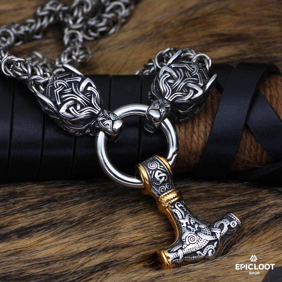 In the halls of Valhalla, the wolf reigns supreme. This Viking necklace, a testament to the primal power of these legendary beasts, features a chunky bronze chain leading to intricately engraved wolf head pendants. In Norse lore, wolves were revered as symbols of loyalty, courage, and the untamed spirit of the wilderness. The exquisite craftsmanship of these pendants, with their fierce expressions and lifelike details, is a tribute to the skill of Viking artisans. Wear this necklace, and feel the spirit of the wolf awaken within you, guiding you through life's battles with the strength and wisdom of your ancestors.