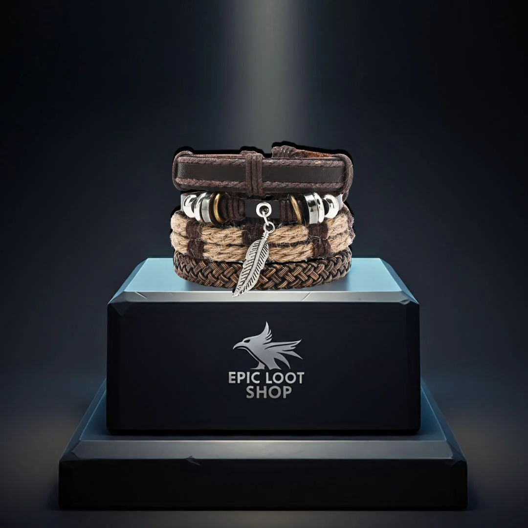 The Raven's Feather Bracelet is an artisanal masterpiece inspired by Norse mythology. Featuring a delicate feather charm alongside handwoven leather and PU weaving, this bracelet captures the strength and wisdom of the raven. Its layered design, blending braided ropes and rugged beads, symbolizes unity, resilience, and the spirit of Viking craftsmanship.
