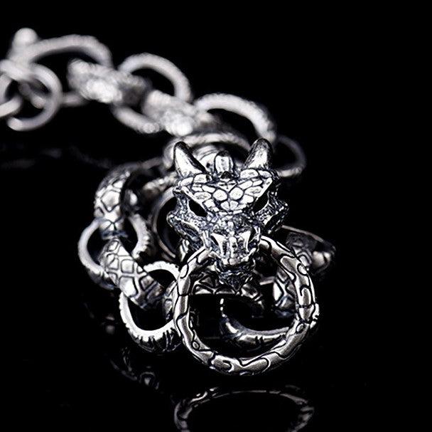 Unleash the power of the dragon with this stunning Dragon Bracelet. Crafted from the finest 925 sterling silver, this Viking bracelet features an intricately detailed dragon design, inspired by the fearsome creatures of Norse mythology. The high-quality materials and expert craftsmanship make this bracelet a true work of art. Wear it as a symbol of your own inner strength and let it be a reminder to always chase your dreams with the fierceness of a dragon.