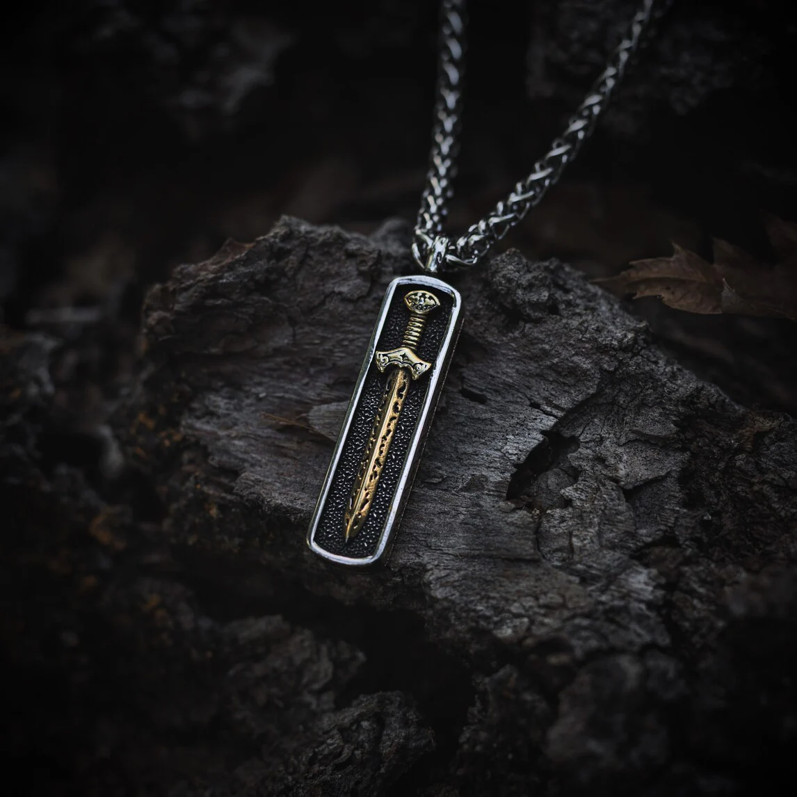 Channel the bravery and skill of the Norse warriors with this impressive Viking Sword Pendant. Meticulously engraved on durable stainless steel, this Viking necklace features a detailed replica of a Viking sword, complete with intricate hilt and blade designs. Wear this pendant as a symbol of your own inner strength and let it inspire you to face life's challenges with the courage and determination of a true warrior.