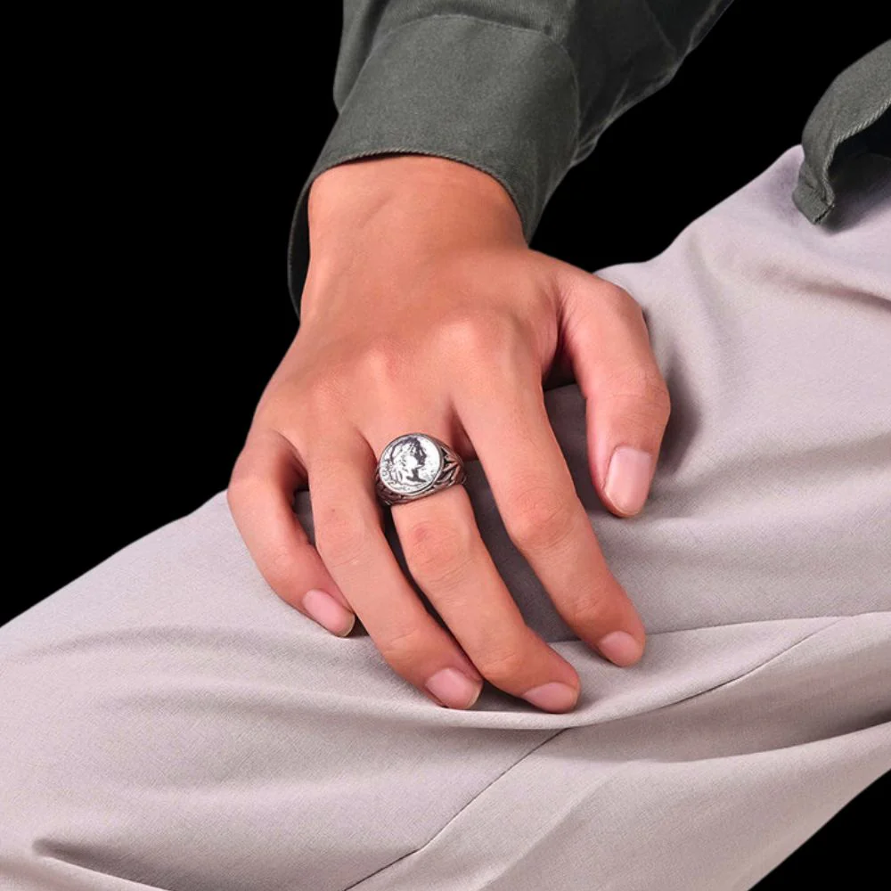Dive deep into the majesty of ancient Rome with our Vintage Roman Caesar Ring. Painstakingly designed, this ring captures the allure of the Roman Empire and the formidable presence of Caesar. Its geometric design seamlessly intertwines with a contemporary style, creating an emblem that feels both timeless and modern. Made with top-notch stainless steel, it's more than a ring—it's a piece of history on your finger.